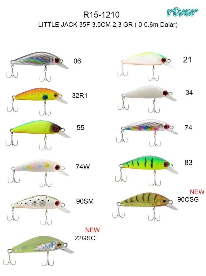 River Little Jack 35F Suyun 30 cm altından wobbling aksiyon (kuyruk sallama) alarak gelir. Kasna, alabalık, perch, turna gibi tatlı su balıklarında kullanıma uygundur. Denizde istavrit, mırmır, levrek ve çinekop avında kullanılmaktadır.